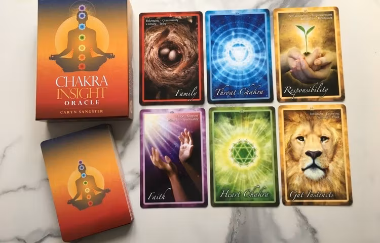 Collectors item from 2012. 49 full colour cards. CHAKRA INSIGHT ORACLE is a powerful tool for connecting to and understanding the subtleties of the energetic body through the age-old system of the chakras. The deck features 49 cards in total, seven cards for each of the seven major chakras - Base, Sacral, Solar Plexus, Heart, Throat, Third Eye and Crown - with each card dealing with an aspect of that particular chakra. The 148-page guidebook offers a wealth of information on different ways to use the cards both on a daily basis and for longer, more intensive transformational journeys. It is an invaluable resource for interpreting each card and addressing the underlying issues and potential 'energy blocks' within the chakras which ultimately helps promote self-healing and profound personal transformation.
