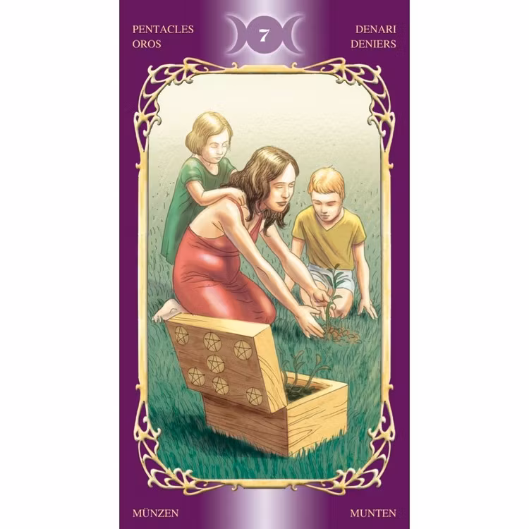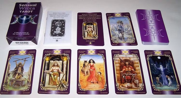 DEMO EX. 78 cards and pamflet, no plastic wrapping. Vivid imagery with a hint of eroticism blends with Pagan themes in this tarot deck. Heed the wisdom of the Great Goddess and the Horned God. Encounter the mysteries of the Maiden, Mother, and Crone. Let the sacred Sabbats guide you.