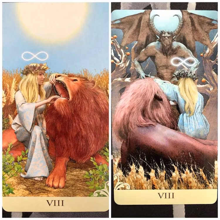 78 cards and 160 pages book. The VICEVERSA TAROT is a double sided deck. Every card has artwork on both sides, one showing the card on its front and one showing the card from the back. Like two faces of a concept or two sides of a coin, the VICE-VERSA TAROT expresses the meaning and symbols of each Arcana not as a snapshot paralysed in time, but as a three-dimensional whole, flowing from day to night, from action to understanding...from front to back.